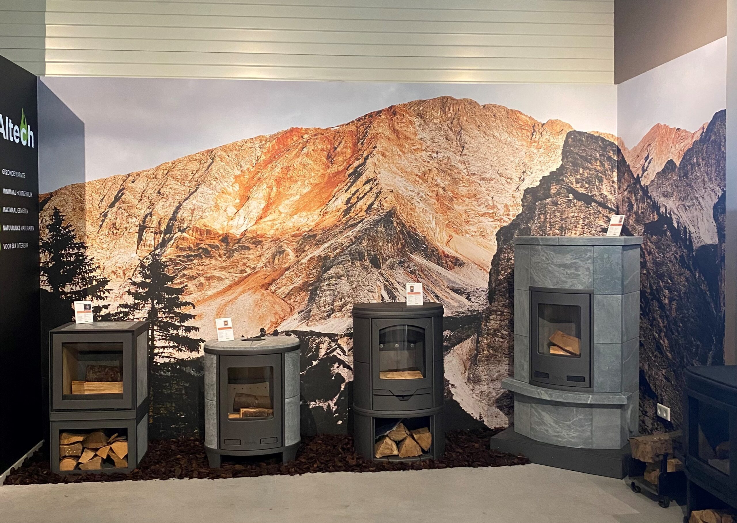 In onze showroom hebben we deze prachtige hoek ontworpen, om de speksteenkachels van Altech nóg mooier uit te laten komen. Door de natuur elementen die hieraan toegevoegd zijn willen wij graag de sfeer creëren die Altech biedt.