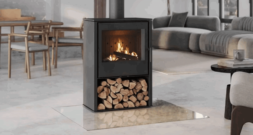 CV Houtkachel Nordic Fire Cottage met houtvak