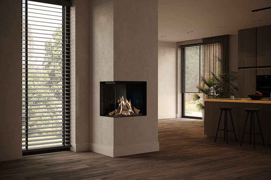 Deze tweezijdige gashaard heeft extra hoge ramen voor een perfect zicht op de prachtige vlammen. Bij plaatsing op een plateau zorgt een speciale LED afdekplaat voor de meest volle gloed in de haard. De exclusieve Dynamic Flame Burner® creëert hoge, dichte en comfortabele vlammen tijdens de koudste momenten van het jaar.