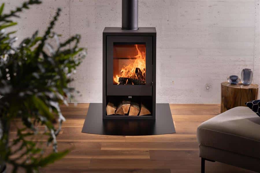 Rechthoekige stalen vloerplaat 102×75 cm, 2 mm, zwart (RAL 9005). Betrouwbare bescherming met hittebestendige poedercoating. CE-gekeurd en ideaal voor een subtiele, moderne afwerking rondom uw haard of kachel.